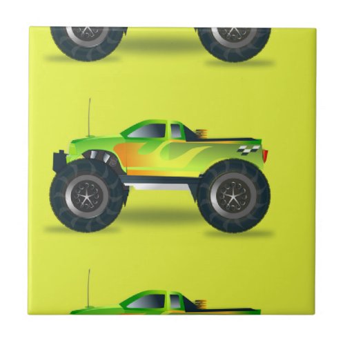 Ad: Monster truck on lime green ceramic tile #monster #truck #cars #transport #kids #ceramictile